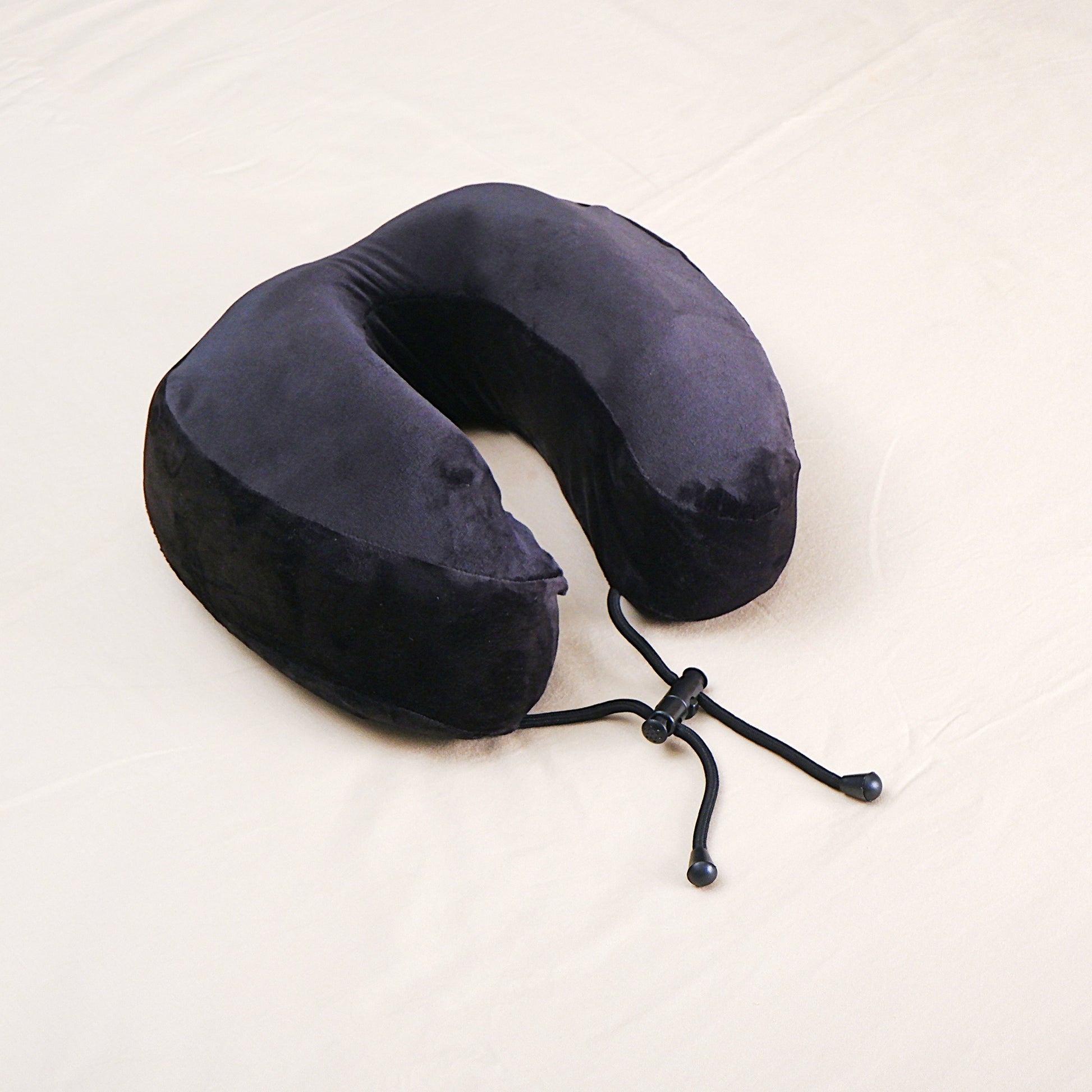 Memory Foam Travel Neck Pillow | Ergonomic U-Shape | Premoium Velvet Cover | Head & Neck Support | Black